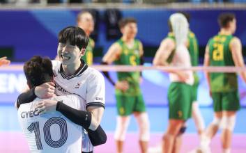 한국 남자배구 대표팀이 호주에 극적인 역전승을 거둬 2022 아시아배구연맹(AVC)컵 준결승에 진출했다. 임도헌 감독이 이끄는 남자배구 대표팀(세계랭킹 33위)은 12일 태국 나콘빠톰 시티에서 열린 예선 2라운드 E조 2차전에서 호주(42위)에 세트 스코어 3-2(20-25, 22-25, 25-20, 25-21, 21-19)로 승리했다. 예선 A조 2차전에서 태국에 덜미를 잡힌 한국은 전날(11일) 일본(9위)에 이어 이날 호주마저 꺾고 조 2위(2승 1패·승점 5)로 기분 좋게 준결승에 진출했다. 지난달 말 국내에서 열린 발리볼챌린저컵 결승 진출에 실패하면서 발리볼네이션스리그(VNL) 승격에 실패한 대표팀의 이번 대회 목표는 우승이다. 한국은 호주의 높은 벽에 막혀 1, 2세트를 모두 내줬다. 대표팀은 허수봉(현대캐피탈)과 나경복(우리카드) 임성진(한국전력)의 공격력이 살아나면서 3, 4세트를 가져왔다. 5세트 승부는 치열했다. 한국은 11-11에서 허수봉의 공격이 상대 블로킹에 막혔고, 이어 호주 공격이 성공하면서 11-13으로 뒤졌다. 하지만 허수봉의 오픈 공격에 이은 상대 범실로 13-13 동점을 만들었다. 13-14에서는 임성진의 퀵 오픈으로 14-14, 듀스 승부에 돌입했다. 18-18에서는 호주 토머스 헵틴스톨에게 서브 에이스를 허용해 매치 포인트에 몰렸으나 허수봉의 오픈 공격으로 다시 동점에 성공했다. 최민호(현대캐피탈)의 서브가 상대 수비수를 맞고 네트를 넘어오자 임성진이 다이렉트 킬을 성공해 20-19 역전에 성공했다. 이어 허수봉이 상대 공격을 블로킹해 긴 승부에 마침표를 찍었다. 양 팀 선수들은 네트를 사이에 두고 박수를 주고받으며 서로를 격려했다. 8년 만의 AVC컵 우승을 향한 도전 중인 한국은 13일 오후 F조 1위 중국(19위)과 준결승을 치른다. 일본(9위)과 바레인(71위)도 4강에서 맞붙는다. 이형석 기자