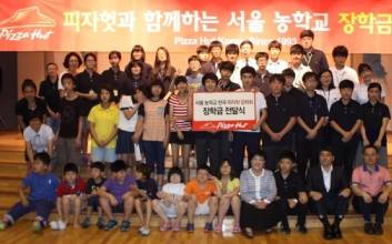 한국 피자헛이 지난 25일 '한국 피자헛 장학회'를 통해 서울농학교 청각장애 학생들에게 장학금을 수여했다고 28일 밝혔다.청각장애 학생을 위한 국립특수학교인 서울농학교의 2014년 여름 방학식에서 진행된 '한국 피자헛 장학금 전달식'에서는 초·중·고 학생 총 52명을 장학생으로 선발하고 900만원의 장학금을 전달하며 학생들을 격려했다.한국 피자헛의 장학금 전달식은 올 해 43회를 맞이하며 서울농학교 학생들을 22년째 후원하고 있다. 2014년 상반기까지 총 43회에 걸쳐 1808명의 장학생들에게 총 4억 6000만원의 장학금을 전달했다.한국 피자헛은 업계 리딩 브랜드로서 사회적 책임을 다하기 위해 다양한 활동을 펼치고 있다. 1993년 서울 농학교와 자매결연을 맺은 한국 피자헛은 '한국 피자헛 장학회'를 설립하고 매년 두 차례씩 꾸준히 장학생을 선발하고 후원하고 있다. 이소은 기자 luckysso@joongang.co.kr 2014.07.28 17:47