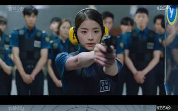 배우 변서윤이 본격적인 삼각관계의 시작을 알렸다. 지난 17일 방송된 KBS 2TV 월화극 '경찰수업' 4부에는 변서윤(이언주)이 사격장을 견학 중인 신입생들에게 사격 시범을 선보이는 장면이 그려졌다. 변서윤은 견학 중인 신입생 모두가 바라보는 가운데 날카로운 눈빛과 고도의 집중력으로 정확하게 표적지를 명중했다. 뛰어난 사격 실력을 선보이며 진영(강선호), 정수정(오강희) 등 신입생들에게 강렬한 인상을 남겼다. 사격 시범 후 헤드셋 세리머니로 반전 청량미를 발산했다. 신선한 마스크와 카리스마 있는 연기력으로 이언주 캐릭터에 녹아든 그는 짧은 등장에도 이상적인 선배미로 확실한 존재감을 드러냈다. 긴장감 넘치는 변서윤의 사격 시범이 끝난 뒤 이달(노범태)과 유영재(조준욱)의 행동이 심상치 않았다. 그들은 동시에 변서윤에게 반한 듯 붉어진 얼굴과 마구 뛰는 심장에 손을 가져다 대며 시선을 마주치는 모습을 보였다. 세 사람의 관계가 흥미진진한 삼각관계를 예고하며 시청자들의 기대를 모았다. 황소영 기자 hwang.soyoung@joongang.co.kr
