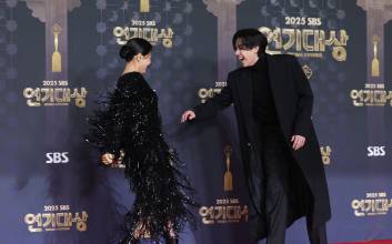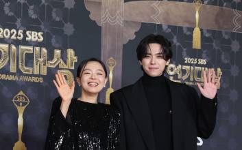 배우 이상희, 김도훈이 31일 오후 서울 마포구 SBS 프리즘타워에서 열린 '2025 SBS 연기대상' 레드카펫 행사에 참석해 인사말을 하고 있다. 서병수 기자 qudtn@edaily.co.kr /2025.12.31/ 2025.12.31 19:13
