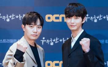 배우 진구와 이원근이 11일 오후 온라인 생중계로 진행된 OCN 새 드라마 '우월한 하루' 제작발표회에 참석해 포토타임을 갖고 있다.‘우월한 하루’(연출 조남형)는 보통의 남자가 납치된 딸을 구하기 위해 옆집에 사는 연쇄 살인마를 죽여야 하는, 가장 우월한 자만이 살아남는 24시간 폭주 스릴러로 진구, 하도권, 이원근, 임화영 등이 열연힌디. 13일 첫 방송. 김진경 기자 kim.jinkyung@joongang.co,kr/2022.03.11/ 2022.03.11 14:28