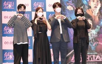 배우 김현목, 한승연, 홍승범, 김은경 감독이 26일 오후 서울 광진구 자양동 롯데시네마 건대입구점에서 열린 영화 '쇼미더고스트' 시사회에 참석해 무대인사를 하고 있다.‘쇼미더고스트’(감독 김은경)는 집에 귀신이 들린 것을 알게 된 20년 절친 예지와 호두가 귀신보다 무서운 서울 물가에 맞서 귀신 퇴치에 나서는 내집 사수 셀프 퇴마 코미디로 한승연, 김현목, 홍승범 등이 열연했다. 9월 9일 개봉.김진경 기자 kim.jinkyung@joongang.co.kr/2021.08.26/ 2021.08.26 18:06