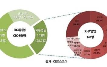 대기업 CEO 4명 중 1명 '외부 영입'…삼성 출신 가장 많아