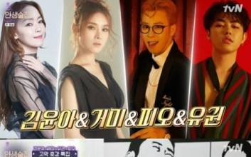 '인생술집' 김윤아, 거미, 피오, 유권이 솔직한 입담과 더불어 멋진 무대를 펼쳤다.4일 오후 방송된 tvN '인생술집'에서는 가수 김윤아, 거미, 피오, 유권이 게스트로 출연했다.과거 MBC '나가수(나는 가수다)'로 호흡을 맞췄던 김윤아와 거미. 두 사람은 "경쟁보단 전우애가 있었다. 서로의 마음을 알아주는 거미 무대 볼 때면 서로 침 흘리면서 봤다완도가 고향인 거미는 바다 장어 건조된 걸 준비해왔다. 거미는 "보통 양념을 발라서 굽는데 그냥 건조된 걸 양념장에 찍어 먹으면 맛있다"고 말했다. 이를 본 신동엽은 "거미가 손맛 좋기로 유명하다. 거미 집과 정상훈이랑 이웃사촌이라 거미가 하는 걸 얻어먹어 봤는데 너무 맛있다고 하더라"고 칭찬했다.두 아이의 엄마가 된 김윤아는 "음악과 육아를 같이 하려면 정말 많은 에너지 소비가 필요하다. 체력적으로 힘들고 살찔 겨를이 없다. 혼자 살 때와는 달리 가족 생활 패턴에 맞춰야 하다보니까 혼자 살 땐 새벽 2시에 작업이 가장 잘됐다면 이제는 낮 1시에도 써야 한다"고 털어놨다.MC 김희철은 "거미가 작년 전국투어 콘서트에서 최다 도시, 최대 예매율, 여자 가수 중 최다 관객 수를 기록했다"라고 전해 모두를 놀라게 했다. 이어 "신곡 제목이 '혼자'냐"라고 물었다.거미는 "왜 요즘 시기에 '혼자'라고 냈냐고 많이 물어보신다. 발라드를 기다리는 분이 많이 계셨다"라고 이유를 전했다. 또 "앨범을 내는 과정에서 고민을 많이 했다. 남편 조정석도 거미의 팬 입장에서 발라드가 듣고 싶다고 얘기해주더라"라고 덧붙였다. 유권은 피오의 가사 실수를 언급하며 "가사를 제대로 한 걸 본 적이 없는 것 같다"고 폭로해 눈길을 끌었다. 선글라스를 쓴 채 프롬프터를 힐끗 본다는 피오의 말에 김윤아와 거미는 격하게 공감했다. 김윤아는 "20년 넘게 부른 노래도 뭐지? 할 때가 있다. 그럴 땐 기억나는 말 아무거나 붙인다"고 말했다. 거미 역시 "기억 안날 땐 솔직하게 말하고 관객 분들께 마이크를 넘긴다"고 덧붙였다.신곡 'Help Me' 작사작곡을 한 피오. 피오는 작사의 영감을 받게 된 계기가 절친 송민호 덕분이라고 밝혔다. 피오는 "당시 'Help Me'가 멜로디라인만 나오고 가사가 없었는데 민호가 솔로곡 '아낙네'로 굉장히 잘됐던 시기에 함께 만나 술을 마셨다. 곡이 잘 된 만큼 부담감을 느끼고 있더라"고 털어놨다.이어 "남들이 보기엔 가장 행복해야 할 사람이 가장 힘든 시기를 보내고 있는 것이 아이러니하다는 생각이 들었고, 누군가 보면 굉장히 섹시할 것 같았다"라며 "'오늘 밤도 비틀 비틀대 반짝거려/위태로운 듯해'라는 가사가 있는데 그 구절이 민호를 보며 구상한 부분이다"라고 밝혀 눈길을 끌었다.유권은 "피오가 예능으로 잘 될수록 불안한 게 있다"라며 "그룹 활동을 하면 앨범 제작 비용이 많이 든다. 그런데 피오는 무조건 멋있어야 한다는 생각에 얼마가 들어도 좋다고 하더라. 근데 그건 우리 수입과 연관이 된다. 피오는 통장 잔고가 가득 차있어서 가능할지 몰라도 나는 아니다"라고 털어놔 웃음을 안겼다.유권이 "뮤직비디오도 해외에서 찍길 바란다"고 하자 피오는 "형이 이런 고민을 하고있는지 처음 알았다. 이번엔 (뮤직비디오를) 국내에서 찍긴 했다. 적정선을 잘 찾아보자"고 유권을 다독였다.밴드 중 멤버 교체 없이 활동해온 몇 안 되는 팀 중 하나인 자우림. 김윤아는 방송국 JTBC의 CM송의 저작권료 대해 언급했다. 김희철은 김윤아에게 "J 방송사 CM송을 녹음하셨던데, 수입이 어마어마했을 것 같다"고 물었다. 김윤아는 "사실 많이 궁금하셨을 거다"라고 말문을 열었다. 이어 김윤아는 "사실 저작권 협회에 내 곡이 200여 곡이 등록되어 있다. 여자 싱어송라이터중에 가장 많은 걸로 알고 있다"라며 "그래서 정확하게 CM송 금액이 얼마가 들어오는지 모른다"고 여유있게 답해 모두를 놀라게 했다. 데뷔했을 때부터 각종 광고에 CM송으로 곡들이 실리며 승승장구했던 김윤아 스토리에 MC들은 "거미도 그렇지 않냐"고 질문했다. 거미는 "저는 그렇지 못했다. 데뷔 하자마자 성대결절에 걸려서 활동을 제대로 못했다"고 밝혔다. 이어 "7년 정도 연습생 기간을 마치고 '모든 걸 보여주겠다'고 다짐하며 데뷔만 기다리고 있었다. 데뷔한다고 다이어트를 무리하게 했는데 그때 당시엔 운동 없이 무조건 굶는 다이어트를 해서 체력 고갈이 심했다. 세븐, 빅마마, 렉시 등 같은 소속사 데뷔 동기들이 왕성히 활동할 때 상대적으로 힘들었다"고 당시를 회상해 눈길을 끌었다.이어 거미는 신곡 '혼자'를, 김윤아는 히트곡인 '야상곡'과 '봄날은 간다'로 짧은 콘서트를 마련해 노래를 불렀다. 두 사람의 명품 보이스에 패널들은 숨죽여 노래를 감상했고, 무대가 끝난 뒤엔 감탄을 금치 못했다.각자의 인생 한곡을 알아보는 시간. 거미는 "이 곡으로 소속사에 들어가 데뷔할 수 있었다"라며 알리시야 키스의 'Fallin' 무대를 선보였다.이날 거미는 남편 조정석에 대해 "일단 대회가 가장 잘 통하고 굉장히 섬세하다. 제가 모르는 감정을 잘 캐치해준다"라며 "평소에도 너무 예리하면 힘든데 인간적인 면이 많다"고 자랑했다. 신동엽은 5년 연애 후 결혼하게 된 거미에게 "오랜 연애로 결혼에 대한