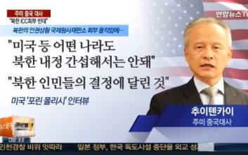 주미 중국대사 북한 ICC 회부 반대, "어떤 나라도 북한 내정 간섭해선 안 돼" 주장