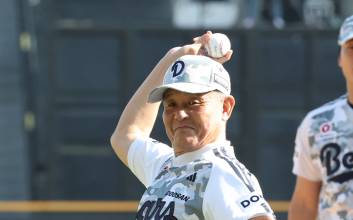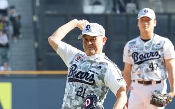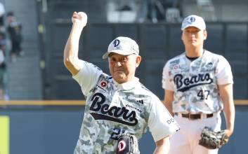 [포토] '불사조' 박철순, 복귀한 곽빈 앞에서 시구