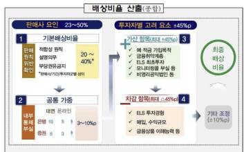 투자자별로는 고령자 등 금융 취약계층인지, ELS 최초가입자인지 여부에 따라 최대 45%p를 가산하고, ELS 투자 경험이나 금융 지식 수준에 따라 투자자책임에 따른 과실 사유를 배상비율에서 최대 45%p 차감한다.가능한 배상비율은 투자손실의 40∼80%였던 DLF 사례 대비 0∼100%로 확대됐다. 그러나 ELS는 DLF 등 사모펀드와 다른 공모 형식으로 상대적으로 대중화·정형화된 상품이고, 금융소비자보호법 시행으로 금융상품 관련 소비자보호 규제나 절차가 대폭 강화된 만큼, 평균 배상비율은 DLF당시(50∼60%)보다 하락할 전망이다.앞서 금감원은 지난 올해 들어 지난 1월 8일부터 두 달간 KB국민·신한·하나·NH농협·SC제일 등 5개 은행과 한국투자·미래에셋·삼성·KB·NH·신한 등 6개 증권사에 대한 현장검사를 실시한 결과, 판매정책·고객보호 관리실태 부실과 판매시스템 차원은 물론 개별 판매과정에서의 불완전 판매가 확인됐다며, 기준안에 이를 반영했다고 밝혔다.금감원은 확인된 위법 부당행위에 대해서는 관련 법규와 절차에 따라 기관·임직원 제재나 과징금·과태료 등 엄중히 조치할 예정이다. 다만, 해당 판매사의 고객 피해배상, 검사 지적사항 시정 등 사후 수습 노력에 대해서는 관련 기준과 절차에 따라 참작할 계획이다.2021년에 라임 사태에서도 불완전 판매책임에도 손태승 전 우리금융그룹 회장에 직무정지 징계를 받았다. 금융당국은 박정림 KB증권 대표이사 사장도 직무정지 징계를 내린 바 있다. 이복현 금감원장은 이날 모두발언에서 "이번 분쟁조정 기준은 억울하게 손실을 본 투자자가 합당한 보상을 받으면서도 투자자 자기책임 원칙이 훼손되지 않도록 마련했다"면서 "앞으로 이에 따라 배상이 원활히 이뤄져서 법적 다툼의 장기화 등으로 인한 사회경제적 비용이 최소화되도록 협조를 부탁한다"고 밝혔다.지난해 말 기준 홍콩 H지수 기초 ELS 판매잔액은 39만6000계좌에 18조8000억원에 달한다. 판매사별로는 은행이 24만3000계좌에 15조4000억원 상당을, 증권사가 15만3000계좌에 3조4000억원 상당을 판매했다. 65세 이상 고령투자자에 판매된 계좌는 21.5%인 8만4000계좌에 달한다. 김두용 기자