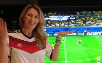 전설의 여자 테니스 스타 슈테피 그라프가 자신의 트위터에 한껏 기쁜 표정의 사진을 올려놓아 누리꾼들의 관심을 모으고 있다. 역시 테니스 스타 안드레 애거시의 아내인 그라프는 9일 오전 2014브라질월드컵 독일-브라질전서 7-1로 크게 이긴 경기에서 대형 TV 화면으로 보이는 경기장면을 배경으로 양 손을 들어 환하게 웃고 있다. 독일 축구대표팀 유니폼 상의를 입은 그녀는 왼 손으로 7-0으로 이기던 당시의 스코어를 가리키고 있다. 이 사진은 현재 온라인 커뮤니티 게시판에서 화제가 되고 있다. 온라인 일간스포츠 2014.07.09 18:12