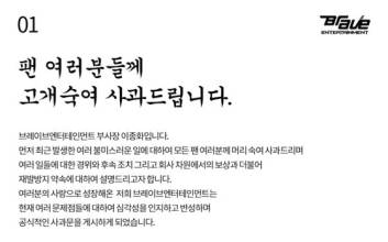 그룹 브레이브걸스 소속사가 일련의 논란들에 팬들에 고개를 숙였다. 26일 브레이브엔터테인먼트 부사장 이종화는 공식 SNS 채널에 "여러 불미스러운 일에 대하여 모든 팬 여러분께 머리 숙여 사과드린다. 후속 조치와 회사 차원에서의 보상, 재발방지 약속을 하고자 한다"고 이야기를 꺼냈다. 내용에 따르면 브레이브걸스 팬 매니저의 갑질 논란은 사직서 제출로 마무리했다. 새롭게 뽑을 팬 매니저는 철저한 인성검증을 거친다는 이방이다. 팬카페 게시글이 일반적으로 삭제됐다는 팬들 주장에 대해선 "1:1 면담을 통해 유사한 일이 일어나지 않도록 했다. 의견을 경청할 수 있도록 계도하겠다"고 강조했다. 높은 가격에 비해 퀄리티가 낮았다는 불만이 나온 굿즈에 대해서도 전량 회수 및 환불을 약속했다. 이밖에도 광고대행사 관련 문제들도 법적인 절차를 밟아 해결하고 있음을 알렸다. 이종화 부사장은 또 "여러분의 기대와 사랑에 보답하지 못했기에 담당자들 모두 무거운 책임을 느끼고 있다. 여러 불미스러운 일에 대해 사전에 방지하지 못한 부분과 대응 또한 부적절했음을 인정하며 사과드린다"고 공식 사과문을 올렸다. 황지영기자 hwang.jeeyoung@joongang.co.kr 2021.07.26 14:39
