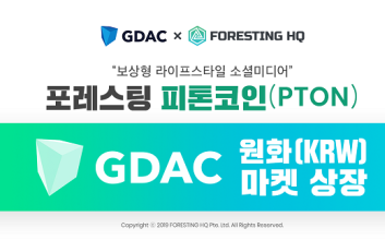 포레스팅 피톤코인(PTON), 국내 암호화폐 거래소 GDAC 원화(KRW) 마켓 상장