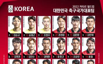 파울루 벤투(포르투갈) 감독이 이끄는 한국 남자 축구대표팀이 2022 국제축구연맹(FIFA) 카타르 월드컵에서 착용할 등번호가 공개됐다.           대한축구협회는 15일 카타르 월드컵에 나설 한국 축구대표팀의 등번호를 확정해 발표했다. 한국 축구 대표팀의 '캡틴' 손흥민(토트넘)은 7번, '골든 보이' 이강인(마요르카)은 18번을 각각 달았다. 김민재(나폴리)가 4번, 황희찬(울버햄튼)이 11번을 다는 등 대부분 평소 달았던 번호를 갖고 월드컵에 나선다.           이번 대회는 기존 23인이 아닌 26인으로 늘어남에 따라 그동안 월드컵에서 볼 수 없었던 24~26번의 등번호 주인공도 생겼다. 24번은 조유민(대전) 25번은 정우영(프라이부르크) 26번은 송민규(전북)가 선택했다.            한국은 월드컵 H조에서 우루과이, 포르투갈, 가나와 경쟁한다. 24일 오후 10시 에듀케이션시티 스타디움에서 우루과이와 조별리그 첫 경기를 치른다.           김영서 기자