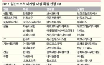 일간스포츠는 2011년 상반기 주요 업종에서 소비자들의 만족도를 극대화 시키고, 마케팅 부문에서 두각을 나타낸 23개 브랜드를 선정, 발표한다.본 특집 선정 브랜드들은 소비자들의 구매 트렌드를 보여주는 척도인 동시에 올해 상반기 시장을 주도할 리딩 브랜드를 미리 알아볼 수 있는 업계의 기상도가 될 것이다. 이번 특집을 통해 선정된 업체들이 2011년 한해 업계를 주도하는 선두주자의 역할을 수행할 것을 기대한다. ◆(주)아모레퍼시픽 - '해피바스' 바디 클렌저 부문 5년 내리 1위 ㈜아모레퍼시픽(대표 서경배)의 토털 바디케어 전문 브랜드 해피바스는 '내추럴 베너핏으로 몸과 마음이 행복해지는 Body & Bath케어'를 컨셉으로 지난 2000년 3월 브랜드 런칭 이래로 피부타입에 맞는 순수한 내추럴 성분과 마일드한 피부효과, 기분 좋은 향으로 즐겁고 행복한 경험을 선사해 왔다. 해피바스는 2006년을 시작으로 최근 5년간 바디클렌저 부문에서 1위 자리를 유지하면서 바디케어 부문의 선두 브랜드로서 그 자리를 꾸준히 지켜오고 있으며, 지난 3월에는 90% 이상 천연 유래 성분으로 피부 자극은 줄이고 천연향으로 마음까지도 케어해주는 '프리미엄 유기농 바디워시' 4종을 선보였다. 한국표준과학연구원의 테스트를 완료한 해피바스 '프리미엄 유기농 바디워시'의 천연향은 스트레스로부터 심신을 안정시키며 생기를 부여하는 향테라피 효과를 가지고 있었다. 한편 해피바스는 해당 카테고리 내의 포지셔닝을 강화해 나가는 등 바디케어 전문 브랜드에서 한 단계 더 나아간 매스 코스매틱 브랜드로 힘찬 도약을 해나가고 있다.◆안동소주 - 신세대 입맛에 맞춘 전통 소주 '느낌' 안동소주는 안동의 맑은 물과 옥토에서 난 쌀을 주원료로 빚는 증류식 소주다. 일반 증류식과 달리 전통기법으로 증류하기 때문에 뒤끝이 없고, 오히려 은은한 향취에 감칠 맛이 입 안 가득 퍼진다. 고려 말 충렬왕 일행이 안동에 와서 머물 때 안동에 전래되었다는 역사가 말해 주 듯 그 맛의 깊이는 천년을 넘나든다. 그동안 고도주(19.8도)로 선물용 도자기 제품에 포장되어 고가로 판매되는 관계로 일반인들이 쉽게 접하지 못했던 아쉬움을 안동소주 '느낌'이 그 깊이의 맛은 그대로 살리며, 젊은 층의 기호에 맞게 순하고 부드러우며 뒤끝이 깨끗한 전통 증류식으로 대중화를 선언하고 나섰다. '술은 단순히 마시고 취하는 음료가 아니라 민족의 전통이 스며든 문화상품으로서 건강에 좋아야한다'는 신개념 주류 문화를 창출하기 위해 부단히 노력하고 있는 안동전통명주(주) 윤종림대표의 고집으로 선보인 '느낌'은 이러한 노력에 힘입어 대형 마트에서 쉽게 접할 수 있게 되었고, 백화점에서도 좋은 반응을 보이고 있다.◆ERGO다음다이렉트손해보험 - 보험료 산출 땐 트렁크 정리함 무료 증정수입은 뻔한데 가계 지출은 늘어만 가는 요즘 같은 때일수록 식비, 아파트 관리비, 아이들 교육비 등 고정비로 인한 부담은 더욱 극심하다. 그런 고정비 중 하나가 해마다 갱신하는 자동차보험. 어떤 이들은 이 때만 되면 '차를 팔아버릴까!' 하는 생각이 들 정도라고 한다.없는 살림 짜내고 짜내어 부담스럽기만 한 보험료 턱 내고 나면 달랑 손에 쥐는건 보험료 납입 영수증 뿐. 이럴 때 기분은 '허탈' 그 자체다. 누구나 한번쯤 이런 느낌 가져보셨을 터. 부담없이 저렴한 보험료는 기본, '독일에서 온 완벽주의 보험서비스'로 최근 아는 사람들 사이 입소문을 타고 있는 ERGO다음다이렉트손해보험은 5~6월 자동차보험이 만기되는 고객이 전화로 본인 보험료만 산출하면 매일 선착순으로 '트렁크정리함'을 무료 증정한다. ERGO다음다이렉트손해보험의 트렁크정리함은 항상 트렁크 속이 복잡하여 보기에도 좋지 않고, 특히 코너링 시 트렁크 안의 물건들이 이리저리 굴러다니는 바람에 불편함을 겪었던 분들이라면 좋은 기회가 될 것이다. 이번 트렁크정리함은 ERGO다음다이렉트손해보험이 지금까지 제공해드렸던 운전자들의 안전과 편리성을 위한 여러 선물들 중에서도 특히 인기가 좋을 것으로 기대된다. ◆BNC코스메틱 - '프라셀 클렌징 티슈'면 황사 고민 끝 프라셀' 태반화장품으로 유명한 BNC코스메틱(대표 장억만)에서 이번에 황사와 중금속의 폐해로부터 피부를 지켜줄 수 있는 '프라셀 클렌징티슈' 제품이 출시되어 화제를 모으고 있다. 현재 기초라인과 함께 인기리에 판매되고 있는 '프라셀 폼클렌징', '프라셀 클렌징크림', '프라셀 태반BB샴푸'에 이어 새롭게 선보인 '프라셀 클렌징티슈'는 넉넉한 사이즈로 한 장만으로도 진한 메이크업 제거뿐만 아니라 특허성분인 알긴산을 함유하여 피부 중금속(황사)흡착.세정력이 뛰어나다. 이 외에도 플라센타와 알로에베라추출물. 사과추출물. 회향추출물. 소나무추출물. 산세베리아잎추출물. 파파야추출물 등 각종 식물성분이 예민한 눈가.입술 등 민감한 부위에도 자극없이 지워주고 고보습성분이 피부에 풍부한 수분을 공급하여 사용후에도 촉촉한 느낌을 부여해 준다. 무엇보다 고급시트지 사용으로 피부자극의 우려를 최소화 시켜 부드러운 촉감과 소프트한 백합 향기는 사용 시 소비자들에게 즐거움을 선