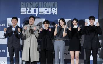한윤선 감독은 “법과 도덕 사이 대립하는 캐릭터들을 긴장감 있게 보여주기 위해 리딩과 리허설에 가장 공을 들였다”며 높은 몰입도를 원작과 차별점으로 꼽았다. 출연진은 마치 한 호흡의 “연극처럼 찍었다”며 그 중심에 성동일의 공이 있었다고 입을 모았다. 박한준의 변호를 받는 이우겸 역 려운은 “(성동일) 선배님과 처음엔 대립 구도에서 점차 팀이 되어가는 과정을 조금 다르게 표현하고자 했다”며 “선배님은 제가 대사 NG를 내도 한 번도 화를 안 내셨다. 계속 ‘괜찮다’며 힘을 많이 주셨다”고 고마움을 표했다.이들에게 맞서는 검사 차이연 역 금새록도 “13분 정도의 대사를 다 외워서 한 번에 이어가는 경험을 ‘어디 가서 할 수 있지?’라고 생각했다. 성동일 선배님이 제 맞춤형으로 호흡해 주시는 게 감사했다”고 말했다.대본 20페이지 분량을 ‘컷’ 없이 촬영하기도 했다. 성동일은 “재판 장면은 카메라 감독님이 카메라를 어깨에 매고 처음부터 끝까지 롱테이크로 찍었다”며 의기투합한 배우들과 제작진에게 공을 돌렸다. 기자 조우철 역 신승환은 “전에 없던 호흡이 영상으로 보여질 것”이라고 자신했다.끝으로 성동일은 “‘블러디 플라워’를 하면서 즐거웠다. 저희끼리 똘똘 뭉쳐서 어떻게 해서든 회차를 줄여보고자 했다. 요즘 드라마 환경이 투자받기 힘드니 멋있게 만들어 보자고 했다”며 “우리나라 영상 매체가 전반적으로 돈과 시간에 쫓기는 상황에도 자신의 자리를 지켜 준 모든 제작진 분들께 감사하다”면서 작품에 관심을 당부했다.‘블러디 플라워’는 내달 4일 첫 에피소드를 공개한다.이주인 기자 juin27@edaily.co.kr