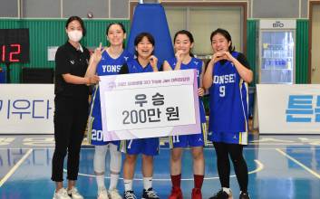 연세대 여자농구 동아리 '연세대 Miss-B'가 대학농구 최강자가 됐다. 여자농구연맹(WKBL)은 "지난 13일 경기도 용인에 위치한 삼성 트레이닝센터(STC)에서 끝난 2022 삼성생명 3x3 Triple Jam(트리플잼) 대학 최강전에서 연세대 Miss-B가 우승을 차지했다"고 14일 전했다. 이번 대회는 아마추어 여자농구 활성화를 위해 3x3 트리플잼 최초로 프로선수가 아닌 아마추어 선수를 대상으로 개최했다. 국내 대학 여자농구 동아리 14개 팀 총 53명의 선수가 참가했다. 우승을 기록한 연세대 Miss-B는 예선 조 1위로 본선 토너먼트에 진출했다. 연세대 Miss-B는 예선에서 한체대 KANCE와 E조에 편성됐다. 예선전에서 한체대 KANCE를 18-7로 꺾은 연세대 Miss-B는 10강전에서 용인대 YB를 21-4로 크게 이겼다. 이어 8강전에서 선수 부상으로 경기할 수 없었던 단국대 단하리를 상대로 몰수승을 거뒀다. 4강전에서는 숭실대 SSU-BALL을 17-1로 이겼다. 돌풍 같은 질주를 한 연세대 Miss-B는 결승전에서는 서울대 SUN을 21-11로 누르고 우승을 차지했다. 이로써 연세대 Miss-B는 우승 상금 200만원을 획득했다. 준우승을 차지한 서울대 SUN은 상금 100만원을 받았다. 대회 최우수선수(MVP)에는 연세대 Miss-B를 오랜 시간 이끌어온 주장 최지원이 선정됐다. 최지원은 본선에서 팀 내 최다인 24득점을 올렸다. MVP 상금은 50만원. 2점 슛 콘테스트에서는 결선에서 5개의 2점 슛을 성공한 숭실대 SSU-BALL 황희정이 우승을 차지했다. 황희정은 상금 50만원을 받았다. 연세대 Miss-B 손나연과 연세대 하이퍼텐션 이혜리가 각각 4개를 기록했다. 숙명여대 배숙켓볼 김서영이 3개, 용인대 YB 조은비가 1개에 성공했다. 한편 유승희(인천 신한은행) 신지현(부천 하나원큐) 박지현(아산 우리은행) 진안(부산 BNK) 윤예빈(용인 삼성생명) 허예은(청주 KB) 등 여자농구 국가대표 선수들이 대회 현장을 찾아 대회 출전 선수들과 함께 슛 게임, 미니 토크쇼, 애장품 전달 등 다양한 이벤트를 진행하며 뜻깊은 시간을 보냈다. 김영서 기자 zerostop@edaily.co.kr 2022.08.14 09:49