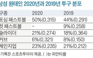 삼성 원태인(21)이 깜짝 놀랄만한 '일주일'을 보냈다. 원태인은 지난주 선발 등판한 2경기에서 모두 쾌투했다. 13일 대구 한화전에서 6이닝 2피안타 10탈삼진 무실점. 18일 사직 롯데전에선 7이닝 3피안타 10탈삼진 무실점하며 '주간 2승'을 달성했다. 주간 평균자책점이 0.69(13이닝 1실점)로 흠잡을 곳이 없었다. 두 경기 연속 삼진 10개를 잡아낸 건 KBO리그 통산 42번째(국내 투수 33번째). 삼성 투수로는 1993년 김상엽 이후 약 28년 만에 나온 대기록이었다. 슬라이더 장착 효과가 크다. 평소 체인지업에 자신 있던 원태인은 올해 스프링캠프에서 '서드 피치' 슬라이더 장착에 역을 올렸다. 그리고 개막 후 성과가 나타나기 시작했다. 롯데전에선 삼진 10개를 모두 변화구(체인지업, 슬라이더)로 빼앗았다. 일간스포츠와 조아제약은 원태인을 4월 둘째 주 최우수선수(MVP)로 선정했다. 그는 "나도 생각하지 못한 성적이다. 이렇게 되니 정말 좋다"며 웃었다. -수상 소감은. "(조아제약 주간 MVP는) 처음 받는 상이다. 그래서 더 영광스럽다. 이제 시작이니까 끝까지 잘할 수 있도록 노력하겠다." -지난주 활약 비결은. "지난해와 다르게 나만의 루틴이 정립됐다. 등판 후 다음 등판까지 웨이트 트레이닝이나 캐치볼 같은 프로그램을 세세하게 짜서 소화하고 있다. 동료 외국인 투수인 데이비드 뷰캐넌에게도 어떻게 하면 좋은지 많이 물어봤다. 스프링캠프부터 루틴대로 운동하니까 효과가 나타나는 것 같다. 덕분에 (시즌 첫) 주 2회 선발 등판도 힘든 것 없이 잘해냈다." -탈삼진이 확 늘었는데. "지난해보다 슬라이더가 좋아졌다. 직구 제구도 나아졌는데, 그 영향으로 체인지업이 더 위력을 발휘하는 것 같다. (슬라이더가 향상됐다는 게) 스스로 느껴지는데 (포수인) 강민호 형도 많이 얘기해준다." -롯데전 탈삼진의 결정구가 모두 변화구였다. "경기 전에 민호 형과 '직구를 결정구로 가자'고 얘길 했다. 그런데 경기 중 변화구가 생각보다 좋아서 민호 형이 '변화구로 볼카운트를 잡거나 결정구로 던져도 모두 괜찮을 것 같다'고 말했다. 경기 중에 패턴을 (직구에서 변화구 위주로) 바꿨는데 결과가 좋게 나와서 다행이었다." -슬라이더의 만족감은 어느 정도인가. "현재는 80% 정도다. 결정구까지는 아니어도 볼카운트를 확실하게 잡을 수 있는 구종이 됐으면 했다. 롯데전에선 결정구와 볼카운트 잡는 것 둘 다 됐다. 체인지업은 왼손 타자 바깥쪽, 오른손 타자 몸쪽으로 흘러가는데 슬라이더는 체인지업 궤적의 반대다. 이전에는 타자들이 체인지업 하나만 생각했다면 이젠 두 가지 공을 염두에 두고 타석에 들어서야 한다. 그게 효과적이다. 마운드 위에서 느끼는 만족감도 크다." -매년 후반기 페이스가 급격하게 꺾였는데. "똑같은 실수를 반복하지 않는 게 첫 번째다. 루틴을 꾸준히 해볼 생각이다. (체력적으로 힘든 여름에도) 웨이트 트레이닝을 줄이지 않고 끝까지 유지할 계획이다." -이젠 등판이 기다려지지 않나. "지난해에는 (선발 등판 이후) 더 쉬면서 체력을 모으고 싶었다. 올해는 빨리 던지고 싶더라. 지난주 일주일에 두 번 등판하니 재밌었다. 지난해 못한 (데뷔 첫) 10승을 해보는 게 개인적인 목표다." 배중현 기자 bae.junghyune@joongang.co.kr