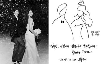 배우 신민이와 김우빈이 하객을 위해 손수 준비한 메뉴카드와 답례품도 화제다.20일 오후 서울 중구 신라호텔에서는 신민아, 김우빈의 결혼식이 양가 가족과 친인척, 가까운 지인들만 참석한 가운데 진행됐다.이후 결혼식에 참석한 지인들의 SNS를 통해 예식 현장이 담긴 사진이 공개돼 온라인 커뮤니티를 통해 확산되고 있다. 특히 결혼식 메뉴카드와 답례품 사진에 관심이 쏠렸다. 결혼 전 신민아가 그리고, 김우빈이 글을 쓴 수제 청첩장이 화제를 모은 가운데, 이날 예식에 테이블 마다 준비된 메뉴판에도 두 사람의 그림과 손글씨가 담겼다.답례품으로는 신민아가 앰배서더로 활동 중인 글로벌 뷰티 브랜드 랑콤과 아쿠아 디 파르마 제품이 준비됐다. 두 사람은 “소중한 시간 함께해 주셔서 감사합니다”라는 메시지 카드로 지심을 담았다.실제 첫 눈이 내리는 날 화제의 결혼식 사진을 촬영한 웨딩 디렉터 업체 측은 “드레스 입고 내려오는 신민아를 보던 김우빈의 눈빛을 잊을 수가 없다”며 “온갖 좋은거 이쁜거 다 해보셨을텐데도 신부 바라보는 신랑 눈빛은 (우리가 웨딩 촬영을 하며) 자주 보던 눈빛이더라”며 흐뭇해했다.신민아와 김우빈은 2015년 연애 사실을 공개한 뒤 10년 열애 끝에 결혼에 골인, 부부가 됐다. 두 사람은 자신들의 결혼을 맞아 한림화상재단, 서울아산병원, 국제구호단체 좋은 벗들 등 여러 기관에 총 3억원을 기부하는 등 선한 영향력도 실천했다.이주인 기자 juin27@edaily.co.kr 2025.12.21 22:40
