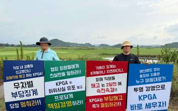 한국프로골프협회(KPGA)에서 최근 해고 통보를 받은 해고자들과 동료 직원들이 릴레이 피켓 시위에 나섰다.이번 릴레이 피켓 시위는 KPGA 투어 KPGA 파운더스컵이 열렸던 전남 영암군 골프존카운티 영암45 대회장 입구 초입에서, 대회 기간인 9월 4일부터 7일까지 진행됐다. 시위 첫 이틀은 해고된 B씨와 C씨가 앞장섰고, 주말에는 동료 직원들이 릴레이 방식으로 힘을 보탰다.KPGA에서는 지난해부터 직장내 괴롭힘 문제가 불거져 나왔다. 2024년 12월 전 임원 A의 직장내 괴롭힘 사건이 공론화됐고, 가해자 징계는 8개월 뒤인 2025년 7월에야 이뤄졌다. 반면 직원들은 징계위원회가 열리고 이틀 만에 해고·견책 등의 무더기 징계 처분을 받았다. 이처럼 징계 결정까지 속도 차가 커 협회 내부 반발이 컸다. 이 같은 문제 제기를 일부 언론이 보도하자, 협회가 무리하게 기사 삭제까지 요구하기도 했다. 릴레이 시위에 나선 D직원은 “솔직히 협회가 이 시위를 빌미로 또 보복을 해올 수도 있겠죠. 그래도 저는 해고된 직원들에게 작은 보탬이라도 되고 싶어 이 자리에 섰습니다”라며 “이건 몇 명만의 문제가 아니거든요. 부당해고가 당연시되는 순간, 협회는 이미 무너진 거랑 다름없다고 생각해서 함께하게 됐습니다” 라고 집회에 동참한 소감을 밝혔다.또 다른 참여자인 E씨는 “억울하게 눈물 흘리는 동료들을 그냥 보고만 있을 수 없었어요. 우리가 피켓을 든 건 단순히 해고 문제 때문만이 아니라, 협회 안에서 최소한의 정의와 존엄은 지켜내야 한다고 생각했습니다” 라고 말했다.이번 릴레이 피켓 시위는 단순히 해고자 개인의 억울함을 넘어, KPGA 내부 구성원들이 부당한 구조와 불공정한 절차에 맞서 공개적으로 문제를 제기한 사건이라는 점에서 의미가 크다. KPGA노조는 “이번 사태의 근본 원인은 경영진의 무책임한 운영에 있다. 그러나 우리는 선수와 후원사에 피해가 가지 않도록 최선을 다하고, 협회가 바로 설 수 있도록 끝까지 노력하겠다” 고 밝혔다.이은경 기자 2025.09.08 10:33