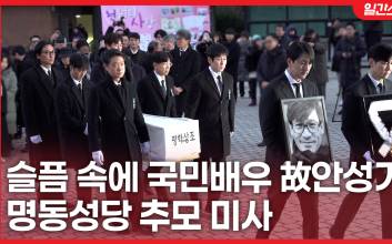 '국민 배우' 고(故) 안성기의 추모미사가 9일 오전 서울 중구 명동성당에서 장례 미사와 영화인 영결식이 거행되었다.이에 앞서 고인의 운구차가 엄숙한 분위기 속 명동성당에 도착했고 영정은 정우성이, 훈장은 이정재가 맡아 운구 행렬에 앞장섰다. 설경구, 박철민, 유지태, 박해일, 조우진, 주지훈이 운구를 맡았다. 배우 김종수, 정혜선, 변요한, 김나운도 침통한 표정으로 고인의 장례 미사에 참석하기 위해 자리했다.정다이 기자 diana23@edaily.co.kr /2026.01.09/ 2026.01.09 08:22