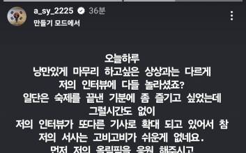 "누군가와 전쟁하듯 이야기 드리는 부분이 아니라 선수들의 보호에 대한 이야기임을 이해해주시기 바랍니다."2024 파리 올림픽에서 세계 정상에 오른 '여제' 안세영(22·삼성생명)이 또 한 번 입을 열었다. 자신의 이야기가 '선수 보호'에 집중된 이야기라는 걸 각인시켰다. 안세영은 6일(한국시간) 개인 SNS를 통해 전날 자신의 인터뷰로 시작된 국가대표팀과 결별 논란에 대해 자신의 생각을 전했다.안세영은 "오늘 하루 낭만 있게 마무리 하고 싶은 상상과는 다르게 제 인터뷰에 다들 놀라셨죠?"라며 "일단 숙제를 끝낸 기분에 좀 즐기고 싶었는데 그럴 시간도 없이 제 인터뷰가 또 다른 기사로 확대되고 있어서 참, 제 서사는 고비고비가 쉬운 게 없네요"라고 전했다.안세영은 자신이 하고 싶은 말이 대표팀의 선수 관리에 대한 부분이란 걸 재확인시켰다. 그는 "제 올림픽을 응원해주시고 기다려 주셔서 감사드립니다"라며 "그 끝에 선수 관리에 대한 부분을 말씀드리고 싶었는데, 본의 아니게 떠넘기는 협회나 감독님의 기사들에 또 한번 상처를 받게 되네요"라고 했다.