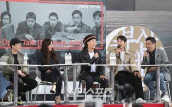 올해 최고의 흥행작, '극한직업' 팀이 부산을 찾았다.4일 부산 해운대구 우동 영화의전당 야외무대에서 열린 영화 '극한직업(이병헌 감독)' 오픈토크에서 이병헌 감독과 류승룡, 이하늬, 진선규, 공명 등 배우들은 부산국제영화제를 오랜만에 찾은 소감과 흥행에 대한 감사 인사를 여러 번 전했다.류승룡은 "부산국제영화제는 6년만에 내려왔다. 많은 영화, 영화인들, 관객들을 만나게 돼 흥분되고 긴장되고 좋다"고 운을 뗐다.공명은 "작품으로 온 것은 이번이 두번째다. 영광스럽고 감사한 마음으로 왔다"며 "부산국제영화제는 시간이 허락되면 그냥 혼자 참석해 영화를 보고 갔던 기억이 난다. 그리고 지인 분이 참여한 영화가 상영을 할 때 보러 오기도 했다"고 말했다.진선규는 "나는 고향이 옆동네 진해다. 부산은 올 때마다 친숙하고 뜨거운 곳, 활기찬 곳이라고 생각한다. 지금도 새삼 느낀다"며 "잘 즐기고 가도록 하겠다. 와주셔서 감사하다"고 인사했다. 이하늬는 "우리에게는 부국제 자체가 굉장히 큰 의미인 것 같다. 설레이고, 뭔가 작품으로 오면 그렇게 뿌듯하고 감사하고 그렇다"며 "특히 '극한직업' 식구들과 만날 수 있다는 것이 기쁘다. 나는 이 자리가 처음이자 마지막 오픈토크다. 의미가 있는 만큼 감사하다"고 덧붙였다.그리고 이병헌 감독은 "부산영화제는 올때마다 처음처럼 설레고 기분 좋은 것 같다. 날씨가 좋아서 유독 더 기분이 좋은 것 같다"며 "부산영화제에서 영화를 갖고 상영한 경험이 많지는 않다. 세번째 정도 된다. 이번에 처음으로 호텔이 오션뷰더라. '달라졌나?' 싶기는 하다. 즐기고 있다. 축제같다"고 진심을 표했다.'극한직업'은 해체 위기의 마약반 5인방이 범죄조직 소탕을 위해 위장창업한 '마약치킨'이 일약 맛집으로 입소문을 타게 되면서 벌어지는 이야기를 담은 코믹 수사극이다. 올 1월 개봉해 누적관객수 1600만 명을 기록하며 역대 국내 개봉작 흥행 2위에 오르는 기염을 토했다.우동(부산)=조연경 기자 cho.yeongyeong@jtbc.co.kr사진=박세완 기자