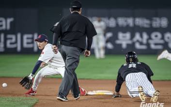 롯데 자이언츠 주전 포수 유강남(33)이 22번 만에 도루 저지에 성공했다. '복덩이' 내야수 이호준(21)의 날렵한 손놀림이 덕분이다. 롯데는 지난 21일 부산 사직구장에서 열린 2025 KBO리그 LG 트윈스와의 홈경기에서 7-7로 비겼다. 5-7, 2점 지고 있었던 8회 말 고승민이 동점 투런홈런을 치며 경기 흐름을 바꿨지만, 이어진 세 차례 공격에서 LG 불펜진을 뚫지 못했다. 나쁘지 않은 결과다. 전날(20일) 1차전에서 9-17로 대패하고, 2차전 역시 경기 중반 역전을 허용하며 루징 시리즈 위기에 놓인 상황에서 뒷심을 발휘했다.어렵게 동점을 만든 상황에서 다시 리드를 빼앗길 위기가 있었다. 10회 초 마운드에 오른 투수 최준용이 선두 타자 문성주에게 볼넷을 허용한 것. 염경엽 감독은 후속 타자 김현수가 삼진을 당한 뒤 과감한 작전을 폈다. 이 경기 전까지 타점 4위(34개)를 지킨 오스틴 딘의 타석에서 문성주에게 도루를 지시한 것. 오스틴이 단타를 쳐도 득점 기회를 이어간다. 문성주가 도루에 실패하면 단번에 분위기가 가라앉을 수 있었다. 염경엽 감독은 롯데 포수 유강남의 도루 저지 능력을 고려한 것 같다. 유강남은 전날까지 상대 팀 주자의 도루 시도 21번 중 한 번도 저지하지 못했다. 그렇게 오스틴 상대 최준용의 초구에 문성주가 도루를 시도했다. 결과는 아웃. 문성주가 두 손으로 네모 모양을 그리며 더그아웃을 향해 비디오 판독을 요청했고, 실제로 이뤄졌지만 최초 판정은 번복되지 않았다. 유강남의 2루 송구는 유격수 방향으로 조금 벗어났다. 하지만 10회 초 대수비로 2루수를 맡은 이호준이 옆동작으로 공을 잡은 뒤 재빨리 몸을 돌려 문성주의 팔을 태그했다. 처음에는 팔 위치가 무릎보다 조금 높았지만, 물 흐르는 것처럼 유연한 동작으로 태그에 성공했다. 사실상 이호준이 잡은 아웃이었다. 입단 2년 차 이호준은 롯데에서 수비력이 가장 좋은 내야수로 평가된다. 4월 말 전민재가 헤드샷 후유증으로 1군 엔트리에서 제외됐을 때는 그 대신 유격수를 맡았고, 타격에서도 매서운 스윙을 보여주며 자신의 존재감을 뽐냈다. 롯데는 비록 이 경기에서 승리까지 거머쥐진 못했지만, 최준용의 호투와 이호준의 수비력을 앞세워 단단한 뒷심을 보여줬다. 안희수 기자 anheesoo@edaily.co.kr 2025.05.22 09:33