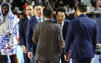 한편 안양 정관장은 최근 상승세를 타던 중에 중요한 일전에 부상자가 나왔다. 김상식 정관장 감독은 "배병준이 발목을 살짝 다쳤다. 평소 좋지 않던 무릎 상태가 나빠졌다. 언제 복귀할지는 상황을 봐야 한다"며 "송창용도 가래톳 근육이 미세하게 찢어졌다고 한다"고 설명했다.정관장은 10일 경기 전 기준 6위 원주 DB와 3경기 차에 있다. 김상식 감독은 "사실 플레이오프 희망이 없지는 않다. 하지만 DB와 골득실 차이가 크다. 실질적으로 4경기를 더 이겨야 한다. 그래도 선수들이 다 '해보자'는 분위기"라고 전했다. 김 감독은 "DB도 오마리 스펠맨을 영입하며 6강 사수를 노리고, KCC도 단기전에 강한 팀이라 집중력을 발휘할 것이다. 우리도 최선을 다하겠다"고 했다.김상식 감독은 "KCC와도 득실차가 크다. 우리와 2경기 차지만 실제로는 3경기라 봐야 한다. DB, KCC와 경기는 무조건 4승 이상을 해야 한다. 열심히 하겠다"고 다짐했다.정관장은 이번 시즌 DB와 트레이드로 국가대표 센터 김종규를 영입했다. 하지만 즉시 전력은 아니다. 김상식 감독은 "종규는 빨라도 3월 중순에 돌아올 것이다. 올 시즌은 15분 이상 뛰기 힘들 것이다. 김경원과 로테이션을 이룰 것이다. 그 다음 한승희가 3번을 오가야 한다"며 "승희는 신장도 있고 스윙맨으로 달리면서 슛을 할 수 있다. 스윙맨으로 많이 활용하려 한다"고 했다.안양=차승윤 기자 chasy99@edaily.co.kr