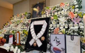 박보균 문화체육관광부 장관이 8일 오후 서울 종로구 서울대학교 병원 장례식장에서 고(故) 송해에게 금관문화훈장을 추서하고 있다.사진=사진공동취재단2022.06.08 2022.06.08 19:05