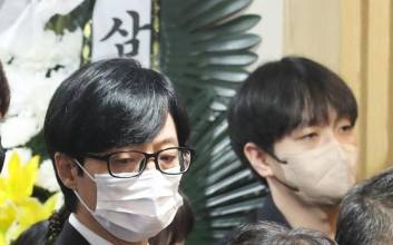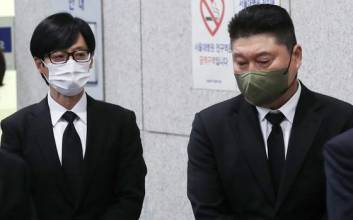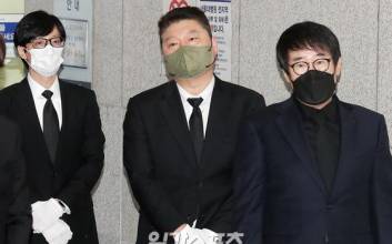 방송인 故 송해 발인식이 10일 오전 서울 종로구 연건동 서울대학교병원 장례식장에서 엄수된 가운데 유재석, 강호동, 최양락이 슬픔에 잠겨 있다.1927년 황해도 재령군에서 태어난 송해는 1955년 창공악극단을 통해 연예게에 데뷔, 1988년부터 2022년까지 34년 동안 '전국노래자랑' MC를 맡아 전국을 누볐다박찬우 기자 park.chanwoo@joongang.co.kr2022.06.10
