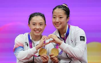 ‘환상의 띠동갑 콤비’ 전지희(33)와 신유빈(21·대한항공)은 기자회견 자리에 약속이나 한 듯 검정색 정장을 입고 긴 머리를 세팅한 채 나타났다. “미리 이야기해서 패션 코드를 맞춘 거냐”고 물었더니 신유빈이 눈을 동그랗게 뜨고 “아뇨”라며 웃었다. 이들은 2023년에 열린 2022 항저우 아시안게임 탁구 여자 복식에서 21년 만의 금메달을 합작했던 주인공이다. 월드 클래스 여자 복식조로 큰 사랑을 받았던 이들 콤비는 이제 볼 수 없다. 전지희가 지난해 말 선수 은퇴를 선언했기 때문이다. 전지희는 지난 14일 서울 동대문구 JW매리어트 호텔에서 열린 KTTA(대한탁구협회) 어워즈 2025에서 공식 은퇴식을 치렀다. 행사가 열리기 직전 따로 마련된 은퇴 기자회견에는 최고의 호흡을 맞췄던 복식 파트너 신유빈도 함께 했다. 전지희는 지난해 열린 2024 파리 올림픽에 한국 대표로 참가해 탁구 여자 단체전 동메달을 합작하며 활약했다. 그는 파리 올림픽을 마치고 지난해 말 선수 은퇴 의사를 밝혔다. 전지희는 “오래 전부터 은퇴할 생각은 하고 있었다. 부상도 있었고, 나이도 많지 않나”라고 했다. 당초 더 빨리 은퇴할 생각도 있었지만, 그의 마음을 잡은 건 신유빈이었다. 전지희는 “2023년에 유빈이랑 정말 말도 안 되는 성적을 거뒀다. 내 탁구 인생 거의 끝에 유빈이를 만났다. 너무 행복했고, 포기하지 않아서 정말 잘했다는 생각이 들었다”고 했다. 그는 한국 탁구 대표로서 마지막 대회였던 2024년 중국 청두 혼성단체 월드컵에서 중국에 패하면서 마지막 경기를 마쳤다. 전지희는 “그 경기를 이기지 못해 미안했다. 유빈이랑 눈이 마주쳤을 때 눈물이 쏟아졌다”고 했다. 신유빈은 “그때 경기가 끝나자마자 언니가 나를 보더니 막 울었다. 은퇴를 정말로 하는구나, 라는 느낌이 왔다”고 했다. 신유빈은 당시를 떠올리면서 “솔직히 말하면 나랑 복식을 더 하자고 말하고 싶었다. 하지만 그런 말을 하면 언니가 은퇴하고 행복하지 않을 거 같아서 말하지 않았다. 언니가 행복하게 지냈으면 좋겠다”고 했다.