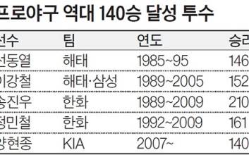 3일 광주-KIA챔피언스필드. 롯데 자이언츠를 상대로 6이닝 2피안타 1실점으로 승리투수(11-2)가 된 KIA 타이거즈 양현종(32)은 자신을 “5선발입니다”라고 소개하며 웃었다. 그는 이날 시즌 4승째(3일 현재 다승 1위)를 거뒀지만, 평균자책점은 4.22에 그치고 있다. 애런 브룩스(3.23)·드류 가뇽(3.95)·이민우(3.23)·임기영(3.67) 등 KIA의 다른 선발투수보다 높다. 그러나 KBO리그 누구도 양현종을 초반 1개월 성적으로 평가하지 않는다. 2007년 KIA에 입단한 그는 2009년부터 꾸준히 에이스로 활약했기 때문이다. 양현종의 존재는 지난겨울 방영된 드라마 ‘스토브리그’에서도 확인할 수 있었다. 극 중에서 드림즈는 트레이드를 통해 ‘국가대표 1선발’ 강두기를 영입한다. 강두기의 등번호가 양현종의 54번이다. 이신화 작가는 강두기의 이미지를 양현종에게서 따왔다고 밝혔다. 양현종은 3일 ‘국가대표 1선발’다운 이정표를 하나 세웠다. 통산 400번째 등판에서 140승 고지에 오른 것이다. KBO리그 39년 역사상 140승을 거둔 투수는 5명뿐이다. 선동열, 이강철, 송진우, 정민철에 이어 양현종이 현역 투수로는 유일하게 이름을 올렸다. 경기 뒤 만난 양현종의 손에는 기념구가 쥐어져 있었다. 박수쳐줄 관중이 입장하지 못했지만, 전광판에 ‘140승’이라는 축하 문구가 떴다. 양현종은 “날 건강하게 낳아주신 부모님께 감사드린다. 150승은 팬들과 함께하고 싶다”며 웃었다. 프로 생활 14년 동안 양현종은 한 해도 쉬지 않았다. 왼 어깨가 아팠던 2012년을 제외하고 매년 100이닝 이상을 던졌다. 지난 5년 동안에는 평균 189이닝을 책임졌다. 이 기간 KBO리그에서 양현종보다 많은 공을 던진 투수는 없었다. 양현종은 “프로 선수라면 누구나 노력한다. 부모님이 유연성을 물려주신 덕분”이라며 겸손해했다. 후배들의 생각은 다르다. KIA 투수들은 양현종으로부터 훈련법과 자기 관리법을 배운다. 코치들도 양현종에게 특별한 주문을 하지 않는다. 스스로 철저하게 몸 관리를 하기 때문이다. 양현종은 “비결은 없다. 시즌이 기니까 평소에 잠을 잘 자는 정도”라고 말했다. 해태 시절(1982~2001년)을 포함해 KIA는 한국시리즈 최다 우승(11회)을 기록한 팀이다. 그만큼 위대한 투수가 많았다. 이강철(현 KT 위즈 감독)은 통산 152승 중 150승을 타이거즈에서 거뒀다. 선동열(전 국가대표 감독)은 타이거즈에서 146승을 기록했다. 양현종은 타이거즈 통산 ‘다승 3위’인 셈이다. 메이저리그(MLB) 진출을 고려 중인 양현종의 2020년 목표는 타이거즈 최다승이다. 남은 5개월 동안 11승을 추가하면 이 감독의 기록을 뛰어넘을 수 있다. 이 감독은 양현종의 신인 시절 투수코치였다. 양현종은 “이 감독님이 ‘세 시즌 연속 잘해야 에이스’라고 말씀하셨다. 이 감독님이 KIA에 계실 때는 인정받지 못했다. 감독님 기록을 깬 뒤 찾아가면 축하해주시지 않을까”라고 웃었다. 광주=김효경 기자 kaypubb@joongang.co.kr 2020.06.05 08:06