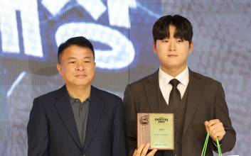[포토] 포토제닉상 황성빈, 김태형 감독 축하
