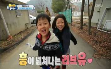 '러브유 커플' 추사랑, 유토가 만났다.14일 방송된 KBS2TV 예능 프로그램 '슈퍼맨이 돌아왔다'에서는 오랜만에 만난 '러브유 커플' 추사랑, 유토는 추성훈과 함께 가평의 한 시골 마을을 찾았다.이날 오랜만에 만남을 가진 추사랑과 유토는 가평의 한 시골 마을로 여행을 떠났다. 아이들과 특별한 추억 만들기 위해 시골 마을을 찾은 추성훈과 추사랑, 유토는 닭에게 모이를 주고 가평 잣을 수확해보는 등 다양한 시골체험에 잔뜩 신이 난 모습을 보였다. 추성훈은 두 아이에게 간장 심부름을 시켰고, 두 아이는 이웃집 할머니에게 가서 간장을 빌려달라 했고, 할머니가 간식과 간장을 주자 추사랑과 유토는 "감사합니다"라며 예의 바른 모습을 보여 훈훈함을 자아냈다.또한 오랜만에 만난 '슈퍼맨' 원조커플 추사랑, 유토는 여전히 알콩달콩한 모습을 보여 시청자들의 미소를 자아냈다.김인영 기자[사진=슈퍼맨이 돌아왔다 방송화면 캡처]