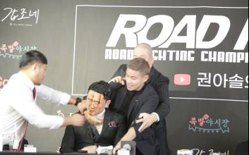 9년 만에 케이지로 돌아오는 개그맨 윤형빈이 ‘간장 테러’를 당했다. 로드FC는 22일 오후 서울 용산구 남산타워 갤러리K에서 내달 16일 열리는 ‘굽네 로드FC 067’ 사전 기자회견을 열었다. 이날 행사에는 정문홍 로드FC 회장, 윤형빈, 권아솔, 이정현 등 대회에 나서는 선수들이 참석했다. 윤형빈은 로드FC 연말 대회에서 일본의 쇼유 니키와 ‘파이터 100’ 스페셜 매치를 치른다. 파이터 100은 100초 동안 빠르게 승부를 보는 화끈한 규칙을 적용한다. 테이크다운 시 서브미션이 없고, 최대 5초 동안 파운딩이 가능한 룰이다.상대 쇼유 니키는 윤형빈과 감정의 골이 깊었다. 지난달 31일 한국 팀과 일본 팀이 파이터 100 정식경기를 치렀고, 한국의 3-1 승리로 막을 내렸다. 당시 벤치 클리어링을 넘어선 난투극까지 벌여 감정싸움이 벌어졌고, 이를 계기로 윤형빈과 쇼유 니키의 대결이 성사된 것.