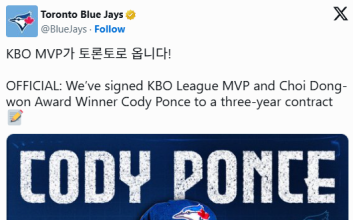 한 통계 매체가 프로야구(KBO) 정규리그 최우수선수(MVP) 출신 코디 폰세(31·토론토 블루제이스)의 미국 메이저리그(MLB) 성적을 전망하면서 9승과 평균자책점(ERA) 4.00을 올릴 거라 내다봤다.미국 매체 팬그래프닷컴은 13일(한국시간) 토론토 소속 선수들의 2026시즌 예상 성적을 전망했다. 매체는 야구 예측 시스템 ‘스티머’를 활용해 개별 성적을 집계 및 공개했다.폰세는 올 시즌 KBO리그 한화 이글스에서 뛰며 정규리그 17승 1패 ERA 1.89, 252탈삼진을 기록한 특급 에이스. 팀의 한국시리즈 준우승에 기여한 그는 올 시즌 정규리그 MVP도 수상했다. 지난 3일엔 조아제약과 일간스포츠가 공동제정한 2025 조아제약 프로야구 대상 시상식서 영예의 대상을 품기도 했다. 이어진 2025 골든글러브 시상식에서도 투수 부문 주인공이 됐다.그랬던 폰세의 다음 챕터는 MLB 토론토였다. 토론토 구단은 지난 12일 공식 소셜미디어(SNS)를 통해 폰세와의 3년 계약을 발표했다. 총액은 3000만 달러(약 440억원)로, 연평균 1000만 달러(약 147억원) 규모다. 이날 팬그래프닷컴이 공개한 폰세의 2026시즌 MLB 성적은 40경기(선발 24경기) 154⅔이닝 9승(9패) ERA 4.00 대체선수대비승리기여도(WAR) 2.3이다. 또 9이닝당 8.68개의 삼진을 잡고, 2.59개의 볼넷을 기록할 거라 전망했다. 폰세가 팀에 2.3승을 더 안길 거라는 의미다.폰세는 지난 2015년 전체 55순위로 밀워키 브루어스로 지명돼 프로 생활을 시작했다. 이어 2020년 8월 피츠버그 파이리츠 유니폼을 입고 빅리그 데뷔전을 소화했다.그는 피츠버그에서의 2년 동안 1승 7패 ERA 5.86으로 고전했다. 이후 일본프로야구(NPB)에서 3년 활약했다가, 올해 KBO리그 최고의 투수로 발돋움했다. 폰세의 마지막 MLB 등판은 지난 2021년 10월 4일 신시내티 레즈전이다. 마지막 승리는 지난 2020년 8월 28일 세인트루이스 카디널스전까지 거슬러 가야 한다.김우중 기자 2025.12.13 09:10