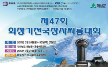 제47회 회장기전국장사씨름대회가 24일부터 30까지 7일간 전라남도 해남군 우슬체육관에서 개최된다. 통합씨름협회가 주최하고 전라남도씨름협회가 주관하는 이번 대회는 전국에서 모인 초중고등부와 일반부까지 100여 팀 1000여 명이 참가한다. 부별은 단체전과 개인전 7체급(경장급/소장급/청장급/용장급/용사급/역사급/장사급)으로 나눠 열린다. 전 종별 경기방법은 예선전~준준결승(8강전)까지는 단판제, 준결승 및 결승은 3판2선승제로 한다. 단체전과 개인전은 토너먼트형식으로 진행된다. 통합씨름협회 박팔용 회장은 “회장기대회는 시즌 중 가장 많은 팀이 참가하는 시즌 최대 규모의 대회다. 선수들이 동계훈련 동안 갈고닦은 기량을 마음껏 뽐냈으면 좋겠다"고 했다. 피주영 기자 2017.03.22 17:19