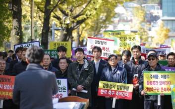 청와대 앞에 모인 축구인들, 한 목소리로 아산 무궁화 사태 해결 촉구