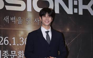 아스트로 MJ가 5일 오전 서울 중구 한국프레스센터에서 열린 2026 뮤지컬 콘서트 '더 미션:K 기자간담회'에 참석해 포토타임을 갖고 있다. '더 미션:K'는 조선에 도착한 네 명의 청년이 이료와 교육의 기틀을 다져온 여정을 토크쇼 형식과 K-POP 퍼포먼스로 풀어낸 작품. 서병수 기자 qudtn@edaily.co.kr /2026.01.05/ 2026.01.05 11:34