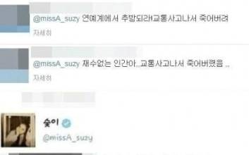 수지, 소속사 JYP "악플 남긴 네티즌, 선처는 없다"