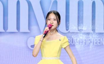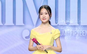 가수 김다현이 2일 오후 서울 강남구 일지아트홀에서 진행된 2집 정규앨범 '열 다섯' 발매 기념 쇼케이스에 참석해 앨범소개를 하고 있다.