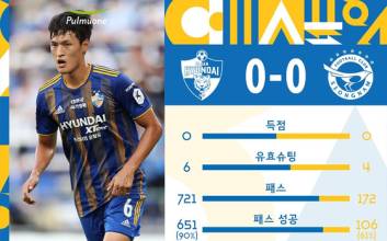 26일 울산 문수 경기장에서 펼쳐진 하나원큐 K리그1(1부리그) 18라운드 울산 현대와 성남FC의 경기에서 홈팀 울산이 성남과 0-0 무승부 접전을 펼쳤다. 울산은 현재 리그 1위 최강팀이지만 치고 올라오는 ‘현대가 형제’ 전북의 추격을 떨치기 위해 리그 최하위 성남은 꼭 잡아야 하는 상대였다. 울산과 전북의 멀었던 격차는 이제 승점 8점에 불과하다. 울산은 ‘주포’ 레오나르도 없이 경기를 나섰다. 지난 22일 서울전에서 받은 경고가 누적되어 출전하지 못했다. 홍명보 감독은 바코를 제로톱으로 기용했지만, 박스 안에서 경합하고 골을 넣어줄 선수가 부족했다. 후반 추가시간 10분까지 공격을 펼쳤지만 성남의 전원수비 앞에선 속수무책이었다. 일방적인 ‘선수비 후 역습’ 전술을 펼친 성남에서 가장 돋보인 선수는 뮬리치였다. 올 시즌 계속된 부진을 겪고 있던 뮬리치는 달라진 모습을 보여줬다. 전반 초반부터 본인의 장점이던 큰 키에도 유연한 기술과 드리블을 선보였다. 전반 2분에는 역습 상황에서는 측면으로 빠져 위협적인 크로스를 올렸다. 뮬리치는 이날 팀의 유효 슛 4개 중 2개를 책임졌다. Sky sports 오범석 해설위원이 ‘뮬리치의 폼이 다시 돌아왔네요’라고 말할 정도였다. 전반 초반 이후에는 울산의 일방적인 공격이 이어졌다. 23분 투입된 ‘엄살라’ 엄원상을 필두로 성남의 골문을 지속해서 위협했다. 결정적인 상황마다 아쉬움이 있었다. 후반 투입된 박주영도 창의적인 패스로 성남의 밀집 수비를 공략했지만 쉽지 않았다. VAR 판정이 울산의 발목을 세 번이나 잡았다. 후반 31분 아마노가 얻어낸 PK부터 후반 추가시간 10분 동안에는 엄원상의 골이 취소됐고 임종은이 박스 안에서 넘어진 장면도 PK는 불리지 않았다. 온 필드 리뷰를 본 주심이 계속해서 판정을 번복했다. 울산 입장에서는 억울할 법도 한 상황. 선제골이 취소된 장면에서 박주영의 핸드볼 파울과 넘어진 임종은이 받은 판정은 일관성이 없다는 평가였다. 결정적인 파울에 대해 '이중 잣대'가 적용됐다. 경기의 판도는 뒤집어져 결국 100분이 넘는 혈투 끝에 승부는 원점으로 돌아갔다. 이동건 기자 movingun@edaily.co.kr