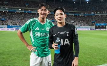 ‘후배’ 박승수(18·뉴캐슬)가 ‘선배’ 손흥민(33·토트넘)의 고별전을 함께한 뒤 거듭 감사한 마음을 전했다.3일 서울월드컵경기장에서 토트넘과 뉴캐슬(이상 잉글랜드)이 2025 쿠팡플레이 시리즈 2경기를 벌여 1-1로 비겼다.이 경기는 무승부라는 결과보다 손흥민의 토트넘 고별전으로 더 의미가 있었다. 손흥민은 지난 2일 토트넘 퇴단 소식을 전했고, 이날 경기를 마치고는 사실상 고별전임을 알리는 듯한 눈물을 흘리며 한국 팬들 앞에서 토트넘 커리어에 마침표를 찍었다. 손흥민이 교체된 뒤론 ‘후계자’ 박승수와 양민혁(19·토트넘)이 그라운드를 밟아 짧은 시간 맞대결을 벌이기도 했다.이번 이적시장을 통해 뉴캐슬 유니폼을 입은 박승수는 국내에서 열린 친선전 2경기를 모두 뛰었다. 그는 토트넘전 뒤 믹스트존 인터뷰서 ‘선배’ 손흥민을 먼저 떠올렸다. 박승수는 “나도, 한국 선수들도, 또 세계의 선수들이 손흥민 선수를 월드클래스로 인정했다. 정말 쉽지 않은 결정이었을 거 같은데, 한국 축구를 이렇게 계속 이끌어 줘서 감사하다”라고 존중의 메시지를 전했다. 손흥민은 토트넘에서만 10년 동안 활약한 뒤 모두의 박수 속에 팀을 떠나게 됐다. 박승수는 앞서 그의 유니폼을 교환하고 싶은 마음을 드러내기도 했지만, 이날 사인을 받은 것에 만족해야 했다. 이제 도전해야 할 10대 박승수는 선배의 길을 밟고자 한다. 손흥민의 고별전을 지켜본 그는 “나도 정말 모두가 인정하는 선수가 되고 싶다. 세계적인 선수가 되는 게 내 꿈이다. 그 꿈을 향해 계속 열심히 노력해야 할 거”라고 강조했다.한편 이날 경기에선 ‘제2의 손흥민’으로 기대받는 양민혁과 함께 짧은 시간 맞대결을 벌이기도 했다. 앞서 에디 하우 뉴캐슬 감독도 박승수를 두고 “손흥민의 플레이를 닮았으면 좋겠다”며 기대감을 드러낸 바 있다. 박승수는 “엊그제 미용실에서 만났을 때부터 함께 뛰면 좋겠다고 얘기했다. 이렇게 함께 뛸 수 있어 좋았다”며 “경쟁의식은 없다. 양민혁 선수는 나보다 엄청 뛰어난 선수다. 그의 모든 것을 배우고, 따라가려고 노력한다”라고 말했다.이번 친선전을 통해 비공식 데뷔전을 마친 박승수는 “팀원들이 다 수고했다고 말해줬다”며 “원래도 굉장히 잘 챙겨준다. 잘 적응할 수 있도록 도와주고 있어 감사하다”라고 덧붙였다. 상암=김우중 기자 2025.08.04 07:19