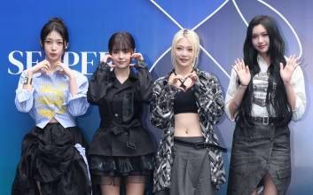에버글로우 시현, 이유, 온다, 아샤가 4일 오전 서울 중구 동대문디자인플라자(DDP)에서 열린 '2026 F/W 서울패션위크' 페노메논시퍼 컬렉션 쇼에 참석해 포즈를 취하고 있다. 서병수 기자 qudtn@edaily.co.kr /2026.02.04/ 2026.02.04 14:52