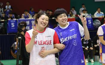 이색적인 한일전이 열렸다. 한국과 일본 여자프로농구 간판스타들이 코트 위에서 화합했다. 선수들은 모처럼 부담감을 내려놓고 즐겼고, 팬들은 흐뭇한 모습으로 지켜봤다.한국 여자프로농구(WKBL) 올스타는 22일 오후 2시 부천체육관에서 열린 하나은행 2024~25 WKBL 올스타 페스티벌에서 일본 W리그 올스타를 90-67로 이겼다.한국과 일본 농구는 그동안 꾸준히 교류했지만, 올스타전 본 경기 기준으로 두 리그 선수가 격돌하는 건 이번이 처음이었다. 그러나 승부는 중요하지 않았다. 이번 올스타 페스티벌은 양국 선수와 농구 팬들이 교감하는 장이었다. 선수들은 팬들을 위해 그간 코트 위에서 보여준 승리욕을 잠시 접어두고, 이채로운 모습을 선보였다.특히 진안(부천 하나은행)이 화려한 퍼포먼스로 코트를 장악했다. 등장부터 화려했던 진안은 3쿼터 중반 치어리더에 합류해 함께 응원하고 춤을 추는 등 분위기를 달궜다. 3쿼터가 중단됐다가 재개될 때는 가발을 쓰고 나와 홀로 춤추며 가장 큰 호응을 끌어냈다.