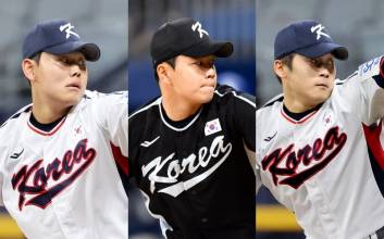 "2026년 월드베이스볼클래식(WBC)에선 반드시..."KT 위즈 투수 소형준(24) 손동현(24) 박영현(22) 삼총사가 태극마크를 향해 힘찬 발걸음을 내디뎠다. 부상(오른 팔꿈치)에서 돌아온 소형준은 올해 선발 로테이션에 복귀, 8경기 퀄리티스타트(QS·선발 6이닝 이상 3자책 이하) 6회, 3승 2패 평균자책점(ERA) 2.83(47⅔이닝 15자책점)으로 좋은 모습을 보이고 있다. 소형준이 잘 이끌면 손동현, 박영현 필승조가 뒷문을 굳건하게 틀어막는다. 셋업맨 손동현은 올 시즌 26경기 3승 무패 7홀드 ERA 0.99(27⅓이닝 3자책)로 압도적인 구위를 선보이고 있다. 지난겨울 일본에서 다듬어 온 포크볼이 효과를 보면서 최고의 시즌을 보내고 있다.박영현은 시즌 초반 부진을 딛고 22경기 2패 13세이브 ERA 2.92(24⅔이닝 8자책)로 안정을 찾았다. 정해영(KIA 타이거즈) 김서현(한화 이글스) 김원중(롯데 자이언츠)과 세이브 공동 선두를 질주 중이다. 패스트볼 평균 구속 148.2㎞의 압도적인 구위를 앞세워 KT의 뒷문을 책임지고 있다. 세 선수는 올해를 넘어 내년도 함께 바라보고 있다. 2026년 3월 열리는 WBC 태극마크다. 소형준은 2023 WBC와 2024 세계야구소프트볼연맹(WBSC) 프리미어12에서 이미 국가대표 경험을 쌓은 바 있다. 하지만 국제대회 선발 투수로 마운드에 오른 경험은 없다. 소형준은 "내년 WBC에선 선발로 나서고 싶다. 아무나 나갈 수 없는 자리이기에 욕심이 있다"라며 강한 열망을 드러냈다. 박영현은 2022 항저우 아시안게임(AG)과 2024 프리미어12에서 태극마크를 달았다. 프리미어12에선 대표팀 마무리 투수 중책을 맡아 시속 150㎞에 이르는 포심 패스트볼로 타자들을 압도했다. "프리미어12는 정말 큰 경험이었다. 성인 국제대회에서 잘 던졌다는 것만으로 뿌듯하다"고 말한 그는 "내 공이 국제무대에서 통한다는 자신감이 생겼고, 앞으로 더 성장하기 위해 더 많은 국제대회에 나서고 싶다"라며 다짐한 바 있다. 손동현은 태극마크 경험이 없다. 지난해 미국 메이저리그(MLB) 서울 시리즈 연습경기에 대표팀 자격으로 나섰지만 정규 국제대회는 아니었다. 2023년 아시아프로야구챔피언십(APBC)에서 예비 엔트리에 오르기도 했지만 그해 한국시리즈(KS)를 치르면서 참가하지 못했다. 손동현은 과거 본지와의 인터뷰에서 "태극마크와는 인연이 없을 줄 알았는데 (APBC 예비 엔트리에 오르더니) 욕심이 생겼다. 나도 대표팀에 진짜 들어가 보고 싶다"라며 태극마크를 향한 열망을 나타냈다. 지금 페이스라면 세 선수 모두 2026 WBC 승선이 가능하다. 애런 저지(미국) 오타니 쇼헤이(일본) 등 세계적인 선수들이 대회 총출동을 예고한 가운데, 세 선수가 꿈에 그리던 태극마크를 달고 이들 앞에 설 수 있을지 관심이 모아진다. 윤승재 기자 2025.05.19 10:04
