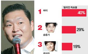 싸이가 유튜브 역대 최다 클릭 1위 신기록을 갈아치웠다. 지난 24일 1위로 올라선 후에도 무서운 속도로 세계 최고의 기록을 쌓아가고 있다. '슈퍼스타K4'에서 딕펑스를 누르고 우승자가 된 로이킴은 5억 상금을 모두 기부하겠다는, 외모 만큼이나 훈훈한 선언을 했다. 지난 한주 연예가 소식을 온탕·냉탕으로 정리했다. ▶온탕싸이누가 이 남자의 질주를 막을까. 미국 타임지 선정 '올해의 인물' 후보로 선정돼 버락 오바마 미국 대통령, 김정은 북한 국방위원장과 자웅을 겨루게 됐다. 선정된다면 히틀러·케네디와 동급으로 올라서게 된다. 이미 '강남스타일'로 8억2000만 건의 유튜브 클릭수를 기록, 팝스타 저스틴 비버까지 제쳤다. 송중기상반기 김수현의 대세를 이어받았다. TV와 영화를 모두 손아귀에 쥐었다. 드라마 '세상 어디에도 없는 착한남자'에서 '세상 어디에도 없는'유윳빛 피부에 애절한 눈망울로 여성팬들의 휘어잡았다. 영화 '늑대소년'은 그를 빼고는 상상도 할 수 없다. 600만 관객이 순수한 그의 눈빛에 무장해제 됐다.로이킴잘생긴 외모에 개념까지 얹었다. '슈스케4' 우승 후 인터뷰에서 상금 5억원을 기부하겠다는 뜻을 밝혔다. '엄친아'이미지로 여성팬들을 사로 잡더니 기부 발언으로 안티팬들의 마음까지 녹였다. 결승 무대에서 부른 자작곡 '스쳐간다'덕분에 음악성까지 한껏 높아보인다. 도대체 모자란 게 뭘까. 조민수한우물을 파며 열심히 연기한 배우에게 박수가 이어지고 있다. 영화 '피에타'에서 보여준 명연기로 제 6회 아시아 태평양 스크린 어워드(APSA)에서 심사위원 대상을 받았다. 앞서 대종상·영평상에서 여우주연상을 받으며 베니스에서 상을 놓친 아쉬움을 풀었다. 장범준(버스커버스커)달달한 사랑 노래를 왜 이렇게 잘 쓰나 했다. 신인배우 송지수와 열애 중인 사실이 알려졌다. 데이트 장면이 카메라에 포착되자 쿨~하게 인정했다. 노래는 복고풍이지만, 연애하는 방식은 딱 요즘 신세대다. 팬들 눈을 의식하지 않고 편안하게 데이트를 즐기는 모습이 풋풋하다. ▶냉탕배슬기소신 or 경솔? 종북 발언으로 곤욕을 치렀다. 24일 배우 임호가 안철수 후보 사퇴 선언에 대해 '안철수님 후보 사퇴하셨네요'라고 SNS에 글을 올리자 '제대로 투표할 힘 빠지네요. 난 이래서 종북자 무리들이 싫어요'라는 멘션을 했다. '누가 종북이냐'를 두고 논란이 뜨겁자 해당글을 지우고 사과했다. 임현진 방송용 스튜디오가 아니라 클럽에서 입을법한 짧은 미니스커트를 입고 기상예보를 했다. 짧은 치마 길이도 문제지만, 너무 몸에 딱 붙어 보는내내 민망했다. 뉴스 내용보다 기상캐스터 옷을 보는 게 더 재밌다는 남성시청자들이 부쩍 늘고 있다.박주미 교통사고로 KBS 사극 '대왕의 꿈'에서 중도하차했다. 간·식도 등을 다쳤고, 성대도 상해 목소리가 제대로 나오지 않는 상황. 제작진은 그의 상태 호전을 기다리며 2주나 방송을 미루다가 결국 홍은희를 새로운 선덕여왕으로 결정했다. 탕웨이 영화 '만추'의 감독 김태용과 열애설이 났다. 한나절이 지나서야 '사실이 아니다'며 공식부인했지만, 영 뒷맛이 개운하지 않다. 네티즌들은 1년 전 부산국제영화제에서 김 감독이 무대에 오르는 탕웨이의 손을 잡아 끌어준 사진까지 찾아내 '연인'이라는 자백을 받고 싶어하는 눈치다. 남녀관계의 진실은 당사자만 알 듯. 유노윤호같은 소속사 고아라와 열애설이 났다. 당황스런 열애 보도에 팬클럽 카시오페아가 난리났다. 서둘러 '사실무근'이라며 팬들을 잠재웠지만, 오랜만에 불거진 '동방신기'의 열애설에 팬들의 흥분이 좀처럼 가라앉지 않고 있다. 정리=이경란 기자 ran@joongang.co.kr