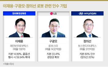 LG와 삼성이 자동차 산업의 성장으로 ‘전장’ 분야에서의 승부수가 마침내 결실을 맺고 있다. 이제 구광모 LG그룹 회장과 이재용 삼성전자 회장은 또 하나의 미래 먹거리로 꼽히는 로봇 분야에서 치열한 경쟁을 예고하고 있다. 정의선 현대차그룹 회장도 미국의 유망한 로봇기업을 인수하면서 경쟁에 불을 붙이고 있다.  구광모·이재용 ‘전장’ 성과구광모 회장은 지난 2018년 총수 취임과 함께 오스트리아 차량용 조명기업 ZKW의 인수를 마무리했다. 1조4400억원을 들이며 전장 사업에 힘을 줬다. 2020년에는 캐나다 자동차 부품기업 마그나와 합작법인을 세우는 등 미래 먹거리 사업에 공을 들였다. 약 2조원을 투자했지만 전장 사업은 ‘아픈 손가락’으로 취급 받았다. 그러다 LG전자의 전장 사업을 담당하는 VS사업본부는 지난해 출범 10년 만에 흑자 전환에 성공했다. 지난해 8조6496억원의 매출을 기록했고, LG전자의 전체 매출액 비중도 10%를 넘어서며 구광모의 선택이 틀리지 않았음을 증명했다.