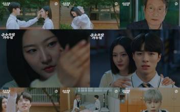 '우수무당 가두심' 남다름이 졸지에 전교 꼴등만 죽이는 악령에게 쫓기는 신세가 됐다. 시험에서 꼴등을 차지한 윤정훈을 찾아온 악령의 정체를 확인한 것. 위태로운 상황에서 남다름은 "두심아..."라며 자신의 마음에 들어온 첫사랑 김새론을 떠올렸고, 김새론은 남다름의 부름을 감지한 듯 번쩍 고개를 들었다. 카카오TV 오리지널 '우수무당 가두심'은 원치 않는 운명을 타고난 소녀 무당 김새론(가두심)과 원치 않게 영혼을 보게 된 엄친아 남다름(나우수)이 위기의 18세를 무사히 넘기기 위해 함께 미스터리를 파헤쳐가는 고교 퇴마로그다. 앞서 지난 20일 공개된 5화에는 꼴등을 찾아온 악령이 남다름과 윤정훈(일남)을 쫓기 시작하는 흥미로운 스토리가 전개됐다. 송영고 모의고사 당일, 남다름은 윤정훈이 시험을 잘 치를 수 있도록 도움을 준 김새론에게 고마워했다. "유일한 친구인데 꼴등 돼서 죽으면 어떻게 해"라며 친구를 생각하는 남다름의 모습에 따스함을 느꼈다. 남다름 역시 김새론을 향한 남다른 감정을 느끼고 있었다. 영혼을 보게 된 이후 소위 오픈발로 영혼들 사이에 '神장개업 맛집'으로 소문 난 남다름은 자신을 찾아온 무시무시한 영혼들에게 "그 애가 내 마음에 들어왔어요. 심장이 뛸 때마다 같이 뛰어요"라며 김새론을 향한 첫사랑의 감정을 솔직하게 고백해 설렘을 안겼다. 마음이 커져가는 사이, 김새론은 갑자기 남다름에게 냉랭한 태도를 보였다. 남다름을 짝사랑하는 수정에게 무당 딸이라는 사실을 발각당하자 "(우수와) 아무 사이 아니야. 다른 애들이랑 똑같아"라고 거짓말을 한 것. 이어 자신이 가는 곳마다 나타나는 남다름을 차갑게 대하며 "제발 나 좀 내버려 둬"라고 마음에도 없는 말을 내뱉더니 급기야 "송영고에 악령이 있어. 꼴등만 죽이는 악령. 그러니까 나 신경 쓰지 말고 일남이만 신경 써"라며 선을 그었다. 김새론과 남다름 사이에 냉랭한 기류가 흐르는 사이, 시험 성적 발표날이 됐다. 남다름은 예상 문제까지 알려주며 윤정훈을 지키려 했지만, 윤정훈이 모의평가에서 결국 전교 꼴등이 되자 분노했다. 남다름은 윤정훈을 향해 분노의 주목을 날렸고, 윤정훈은 "짜증나잖아. (공부)하고 싶어서 하는 게 아니라 죽을까 봐 겁나서 하는 거"라는 말로 성적 지상주의 속 원치 않게 학업에만 몰두해야 하는 학생들의 처지를 일깨우며 시청자들에게 강한 공감을 전했다. 이때 학교 지하실을 찾은 교장 문성근(경필)은 "밥 먹을 시간이야"라며 악령을 풀어 소름과 공포를 유발했다. 악령 봉인 해제와 함께 남다름과 윤정훈은 순식간에 악령으로부터 쫓기는 신세가 됐다. 남다름은 악령을 본 위태로운 상황에 마음속으로 김새론을 불렀고, 불길함을 감지한 김새론과 악령을 피해 윤정훈을 끌고 달아나는 남다름의 모습이 이어지며 숨쉴 틈 없는 숨멎 엔딩을 장식했다. 꼴등만 죽이는 악령을 두 눈으로 확인한 남다름이 소중한 친구 윤정훈을 지킬 수 있을지 6화에서 펼쳐질 스토리에 기대감이 높아진다. '우수무당 가두심'은 매회 20분 내외, 총 12부로 구성된다. 매주 금요일 오후 8시에 공개된다. 황소영 기자 hwang.soyoung@joongang.co.kr