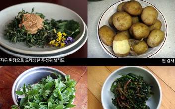 “더운 여름엔 감자를 소금 쿡 찍어 먹으면 최고죠.” 전라북도 무주로 내려온 지 12년, 장영란·김광화 부부(www.nat-cal.net)는 저절로 제철 음식 애찬론자가 됐다. 전망 좋은 산기슭에 집 주위에 철 따라 씨 뿌리고 곡식을 거둔다. 밭에는 제철 야채와 들나물이 가득하다. 살짝 데쳐 된장·들기름에 조물조물 무치면 훌륭한 반찬이요 건강식이다.▲철 모르고 먹는 음식, 질병 불러아내 장영란씨는 “건강한 땅에서 태양을 듬뿍 받고 자란 제철 야채와 나물은 생명력이 가득한 ‘명품’이다. 현대인 잦은 병치레는 철이 다른 야채를 섞어 먹는 데서 올 수 있다”고 말했다. 명품을 먹고 나면 몸이 가벼워지고 “감사하다”는 말이 절로 나온다. 장씨는 “밭을 갈아 엎지 않는 무경운 경작을 하기 때문에 밭에 철 따라 나물이 무성하게 난다. 밭에 김을 매다 보면 나물 캐는 것인지 김 매는 것이지 모를 정도다. 된장국이 허전하다 싶으면 눈에 보이는 질경이 잎 서너 개를 따다 넣는다”면서 “텃밭에서 푸성귀만 자급자족해도 현대인들이 훨씬 건강해질 것이다. 도시 아이들이 야채를 잘 안 먹는 것은 맛이 없기 때문이다. 급식 때 매주 하루는 제철 음식을 제공하면 어린이 건강에 상당히 도움이 될 것”이라고 말했다. 남편 김광화씨는 “인간은 자연의 일부다. 자연과 리듬을 같이 할 때, 제철 음식을 먹을 때 몸이 순조롭게 운행한다. 밭 일을 하고 땀을 흘린 뒤 오이 밭을 지나가면 오이가 나를 당기는 것 같다. 한번 베어 물면 피로도 풀리고 온몸이 시원해진다. 몸이 알아서 필요한 것을 챙긴다. 제철 음식이야 말로 진짜 보약이다”고 말했다. 농사를 지을수록 제철의 힘을 실감했다. 배추는 2~3개월에 쑥쑥 자란다. 김장 김치를 재배하기 위해서는 찬바람이 일어나는 여름철 끝 무렵에 심어야 한다. 조그만 빨리 심으면 싹이 올라오자마자 식욕이 왕성한 벌레 밥이 된다. 제대로 싹이 올라올 수 없다. 벌레들이 식욕이 떨어질 때를 기다렸다 파종한다. 곡식을 제때에 심으면 알아서 크고 사람 손이 적게 간다. 그래서 제철 음식은 싸다. ▲자연을 살려 단순하게 요리제철 음식은 맛이 있을 뿐만 아니라 입맛까지 깨어나게 한다. 씹을수록 고소하다. 또 제철음식끼리 궁합이 잘 맞는다. 여름 오이는 매실과, 가을 무는 홍시와 잘 어울린다. 오이가 한창 열릴 때는 매실 장아치가 맛이 든다. 오이를 먹을 때 매실 장아찌를 곁들인다.여름에는 땀을 적당히 흘려야 하고 겨울에는 덜 움직이고 적게 먹어야 건강하다. 지금은 오이·감자·부추·토마토·옥수수 철이다. 보리밥도 좋다. 시원한 물에 띄워 먹는 물 오이지는 한여름을 잊게 해준다. 김씨는 “옥수수는 따자마자 삶아먹으면 입이 쩍쩍 들어 붙을 정도로 달고 차지다. 딴 지 하루가 지나면 당도가 뚝 떨어진다”며 옥수수 예찬론에 빠졌다. 겨울에는 고구마가 제 맛을 낸다. 고구마는 오래 둘수록 서서히 숙성해 단맛이 많아져, 한겨울 추위를 이기는데 한몫 한다.그들은 ‘단순하게 먹자’주의자들이다. “자연의 모습을 살려 먹는 것이 자연의 생명력을 제대로 받아들이는 방법이다. 윤이 반질반질 나는 싱싱한 풋고추를 된장에 찍어먹는 것 보다, 찐 감자를 소금에 찍어먹는 것 보다 더 좋은 요리법이 어디 있겠느냐”고 반문하면서 “입맛이 단순해지면 오이 향이 왜 향기로운지, 당근이 씹을수록 얼마나 고소한지, 돼지감자를 왜 멧돼지가 좋아하는지 알게 된다”고 말했다. 흔히 만날 수 있는 나물·야채들의 단순한 자연 요리법을 모아 ‘자연 그대로 먹어라’는 책을 최근 펴냈다. 아내는 글을 쓰고 남편은 사진을 찍었다. 무주=김천구 기자 2008.07.31 08:58