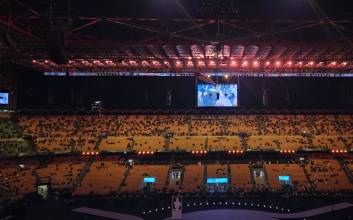 [2026 밀라노] 겨울 축제 개막식 앞둔 ‘축구의 사원’…세계 각국 팬들이 모였다