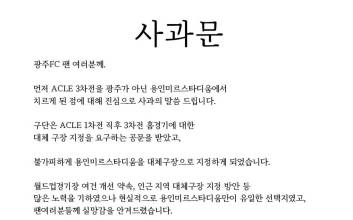 김성배 문화체육실장은 “아시아챔피언스리그 엘리트 3차전을 홈구장이 아닌 다른 구장에서 치르게 된 점을 송구스럽게 생각한다”며 “앞으로도 선수들이 최상의 경기력을 보일 수 있도록 잔디 컨디션 관리에 최선을 다하겠다”고 말했다.광주는 오는 27일 광주월드컵경기장에서 상하이 선화(중국)와 2024~25 ACLE 리그 스테이지 5차전을 치른다.앞서 3승 1패를 거둔 광주는 동아시아 그룹 2위를 달리고 있다.김희웅 기자